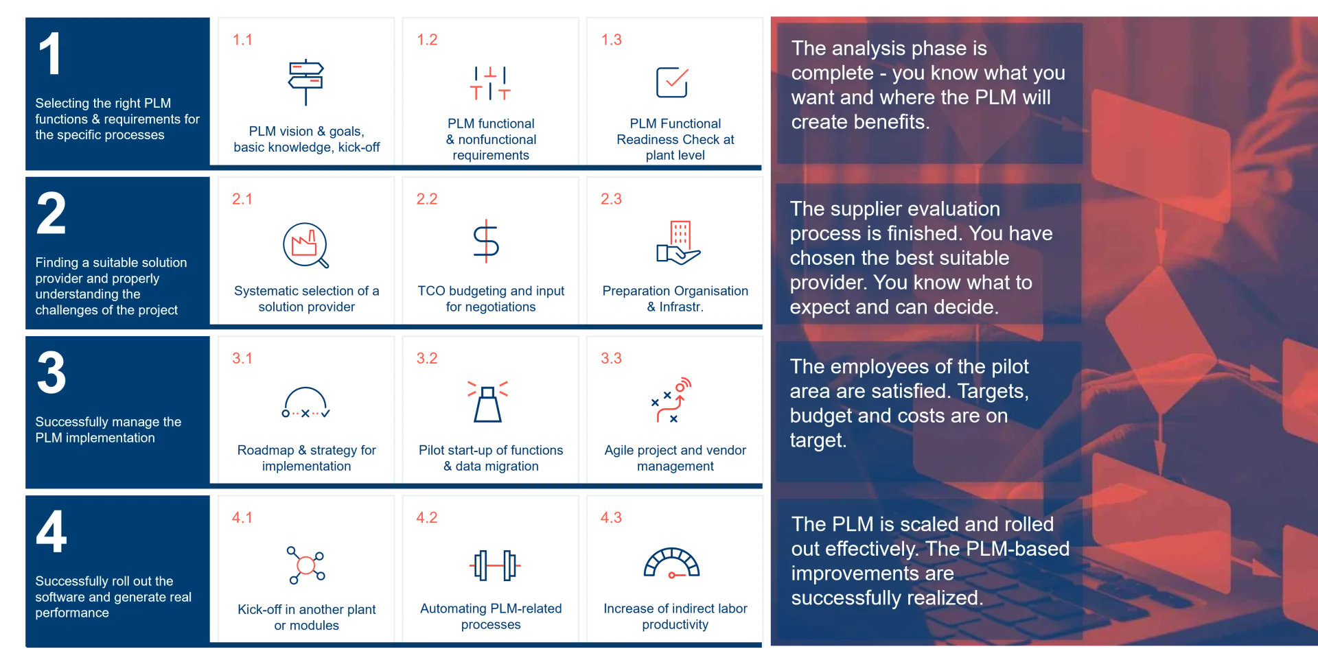 Four phases to realize a real performance increase in the company with a PLM introduction
