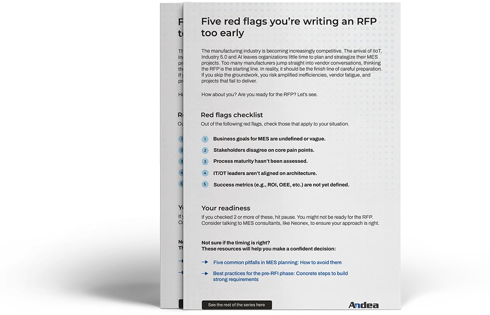 Readiness is only one side of the coin. The other is making sure MES aligns with your business strategy before you ever issue an RFP. To learn more, see our perspective in Dr. Peter Stephan’s article titled “Why MES success starts before the RFP”, published on Andea’s website.