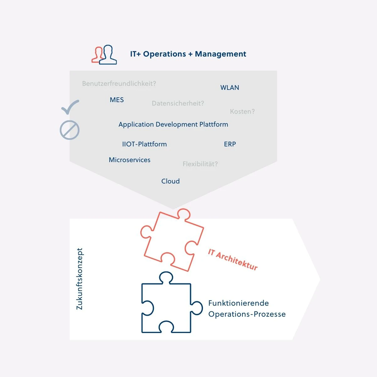 Durch unsere Erfahrung aus Industrie und Beratung wissen wir, dass es bei der Definition und Implementierung einer zukunftsfähigen IT-Architektur auf drei Dinge ankommt: