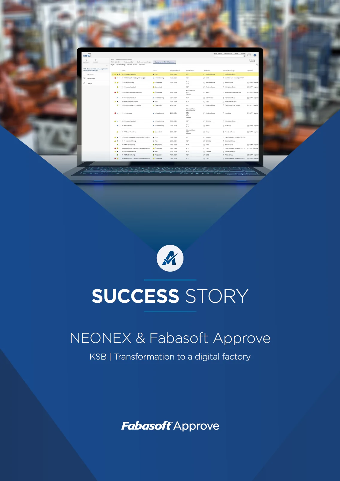 Detailed information can be found in the case study "NEONEX & Fabasoft Approve: KSB | Transformation to the digital factory"
