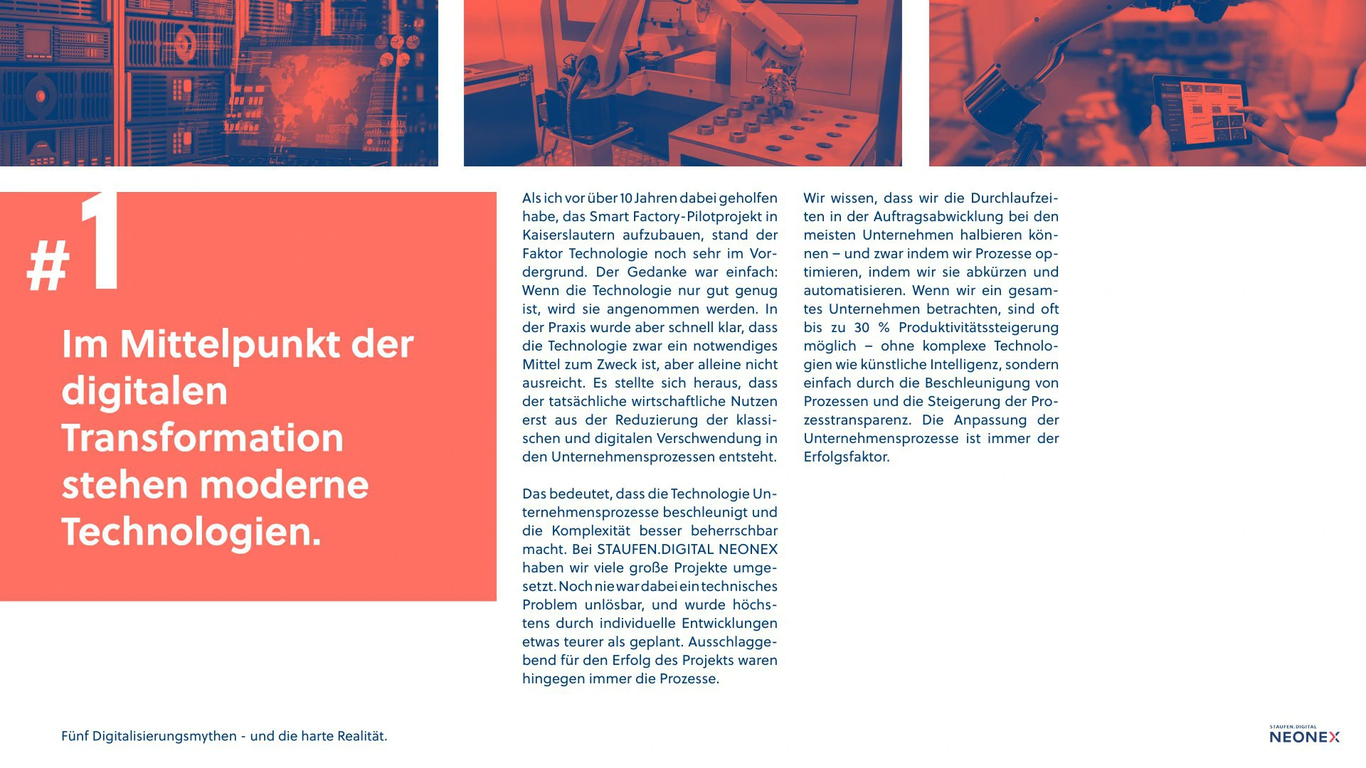 Dies sind drei der fünf Digitalisierungsmythen, die Senior Partner Dr. Jochen Schlick in fünf Jahren Erfahrung bei NEONEX immer wieder begegnet sind. Doch stimmen diese wirklich? In seinem Paper räumt Dr. Schlick mit diesen Themen auf und beweist oft das Gegenteil der behaupteten Mythen.